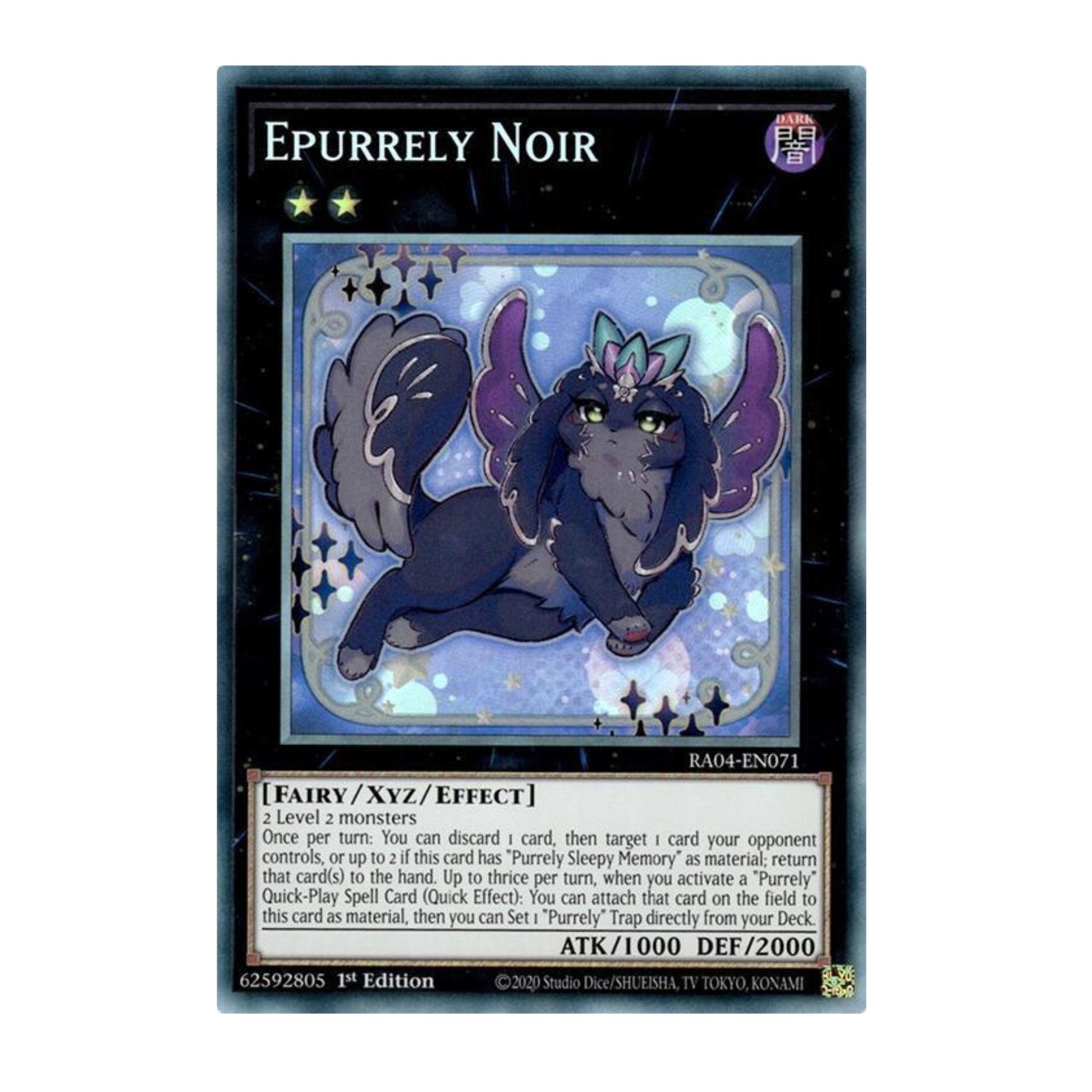Once per turn: You can discard 1 card, then target 1 card your opponent controls, or up to 2 if this card has "Purrely Sleepy Memory" as material; return that card(s) to the hand. Up to thrice per turn, when you activate a "Purrely" Quick-Play Spell Card (Quick Effect): You can attach that card on the field to this card as material, then you can Set 1 "Purrely" Trap directly from your Deck.