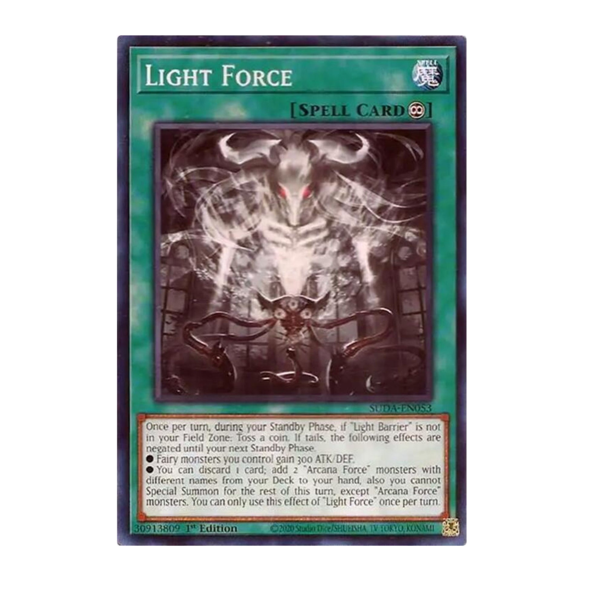 • You can discard 1 card; add 2 "Arcana Force" monsters with different names from your Deck to your hand, also you cannot Special Summon for the rest of this turn, except "Arcana Force" monsters. You can only use this effect of "Light Force" once per turn.