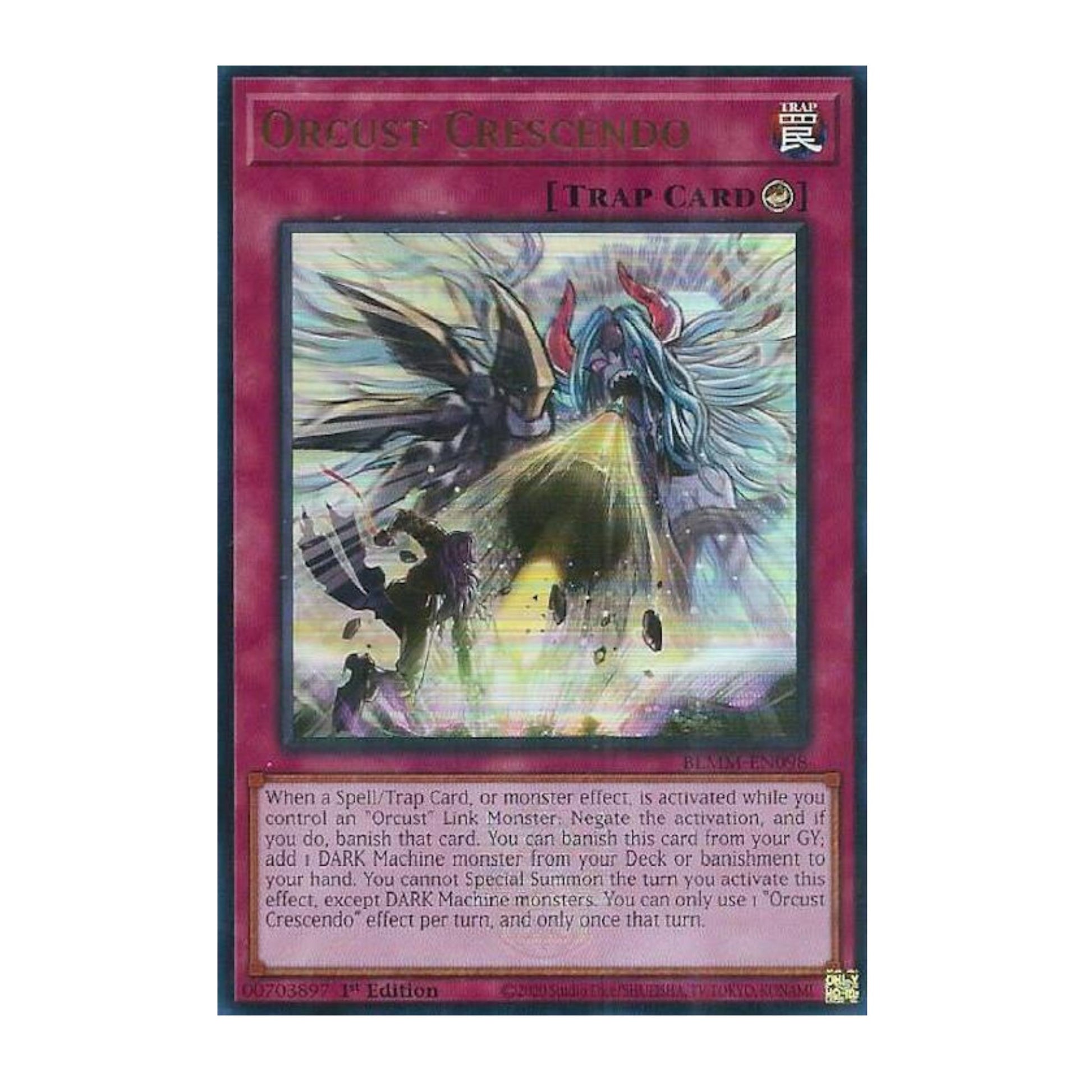 When a Spell/Trap Card, or monster effect, is activated while you control an "Orcust" Link Monster: Negate the activation, and if you do, banish that card. You can banish this card from your GY; add to your hand 1 of your DARK Machine monsters that is banished or in your Deck. You cannot Special Summon monsters the turn you activate this effect, except DARK Machine monsters. You can only use 1 "Orcust Crescendo" effect per turn, and only once that turn.