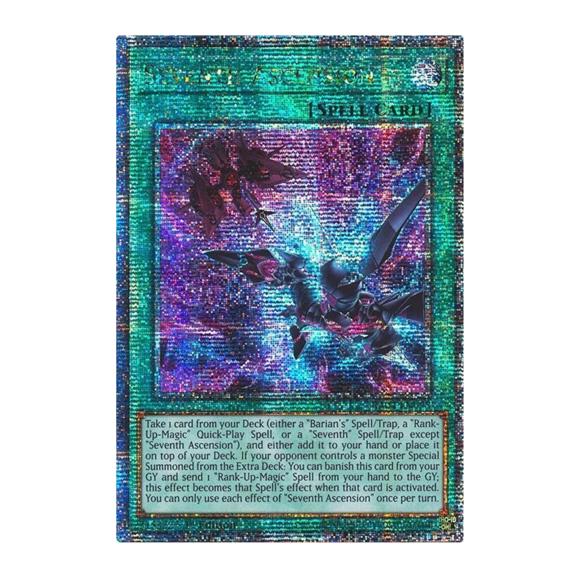 Take 1 card from your Deck (either a "Barian's" Spell/Trap, a "Rank-Up-Magic" Quick-Play Spell, or a "Seventh" Spell/Trap except "Seventh Ascension"), and either add it to your hand or place it on top of your Deck. If your opponent controls a monster Special Summoned from the Extra Deck: You can banish this card from your GY and send 1 "Rank-Up-Magic" Spell from your hand to the GY; this effect becomes that Spell's effect when that card is activated. You can only use each effect of "Seventh Ascension" once per turn.