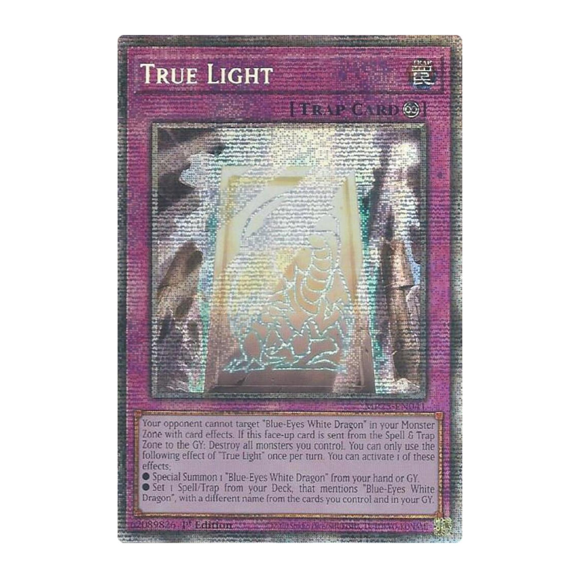 Your opponent cannot target "Blue-Eyes White Dragon" in your Monster Zone with card effects. If this face-up card is sent from the Spell & Trap Zone to the GY: Destroy all monsters you control. You can only use the following effect of "True Light" once per turn. You can activate 1 of these effects;