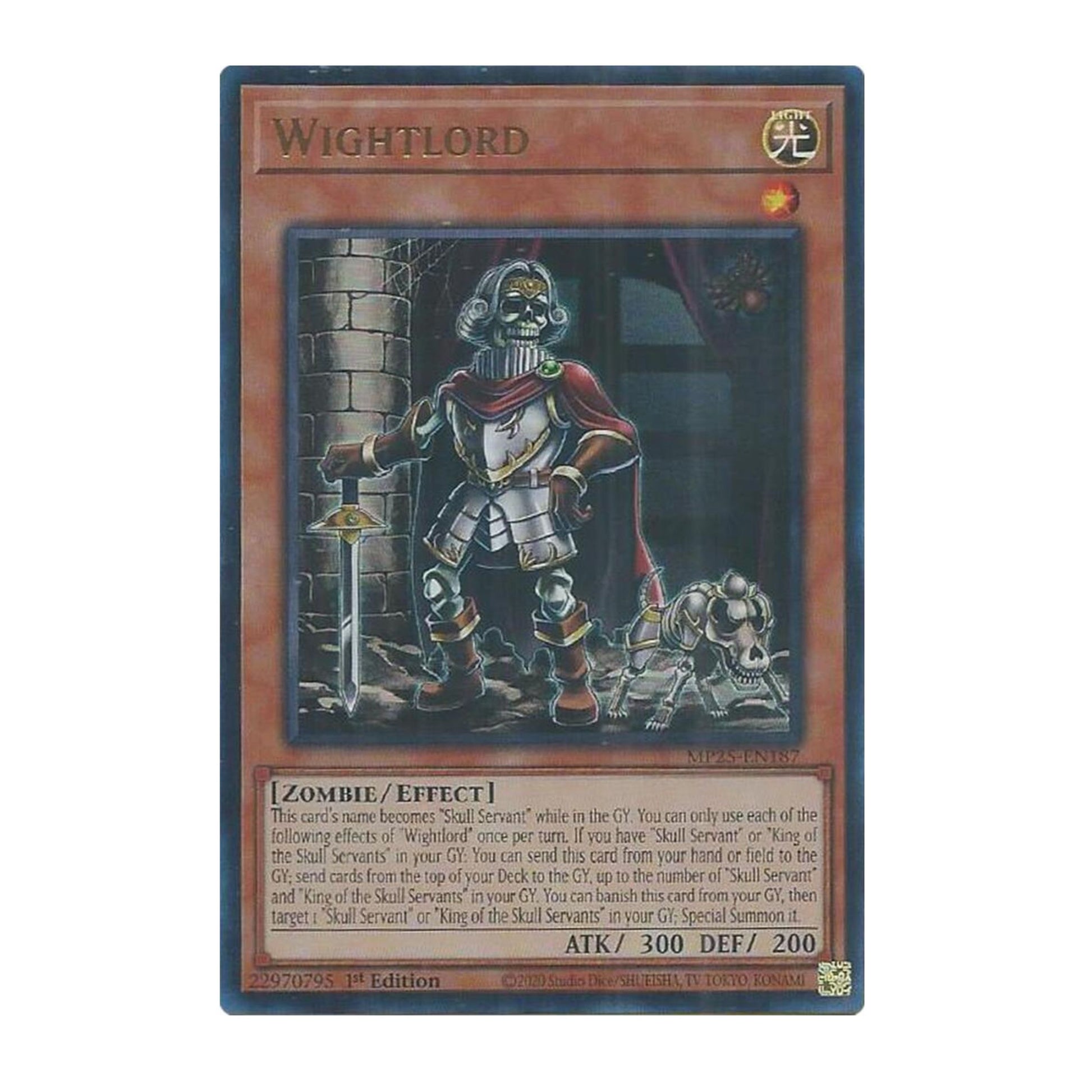 This card's name becomes "Skull Servant" while in the GY. You can only use each of the following effects of "Wightlord" once per turn. If you have "Skull Servant" or "King of the Skull Servants" in your GY: You can send this card from your hand or field to the GY; send cards from the top of your Deck to the GY, up to the number of "Skull Servant" and "King of the Skull Servants" in your GY. You can banish this card from your GY, then target 1 "Skull Servant" or "King of the Skull Servants" in your GY; Special Summon it.